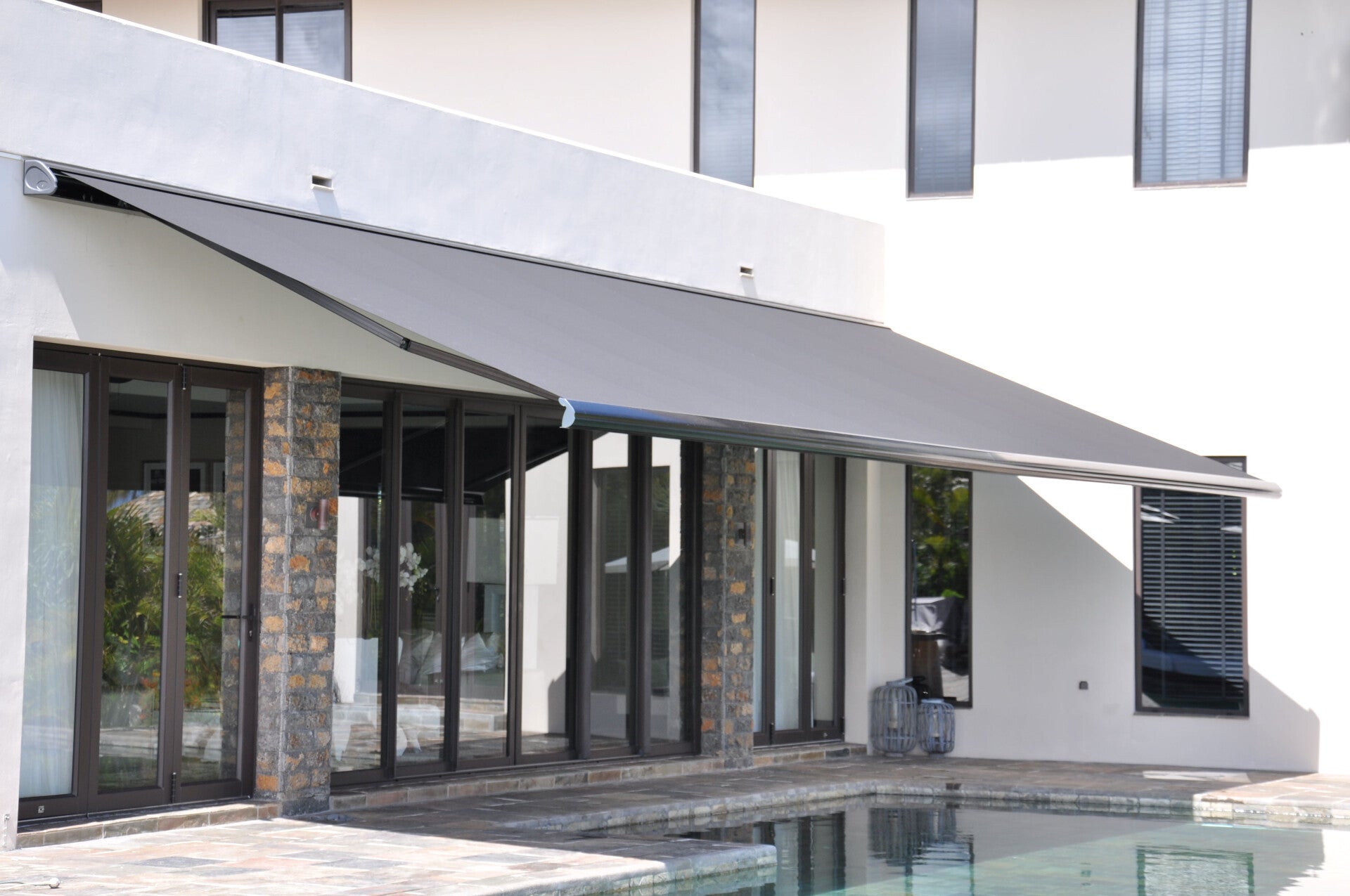 Zelfs in gesloten toestand blijft het scherm een echte blikvanger voor de gevel.