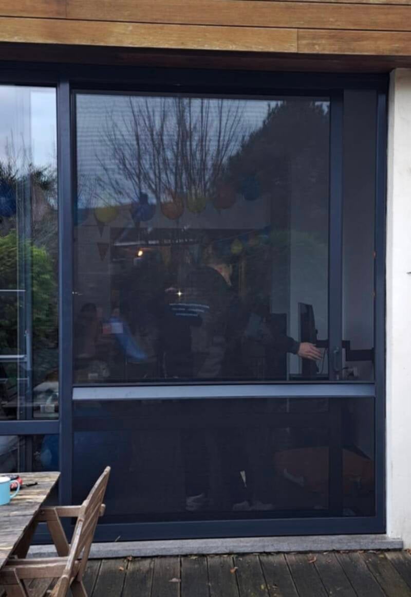 Plaatsing van een schuifhor en vaste inzethorren, perfect afgestemd op de kleur van de ramen.